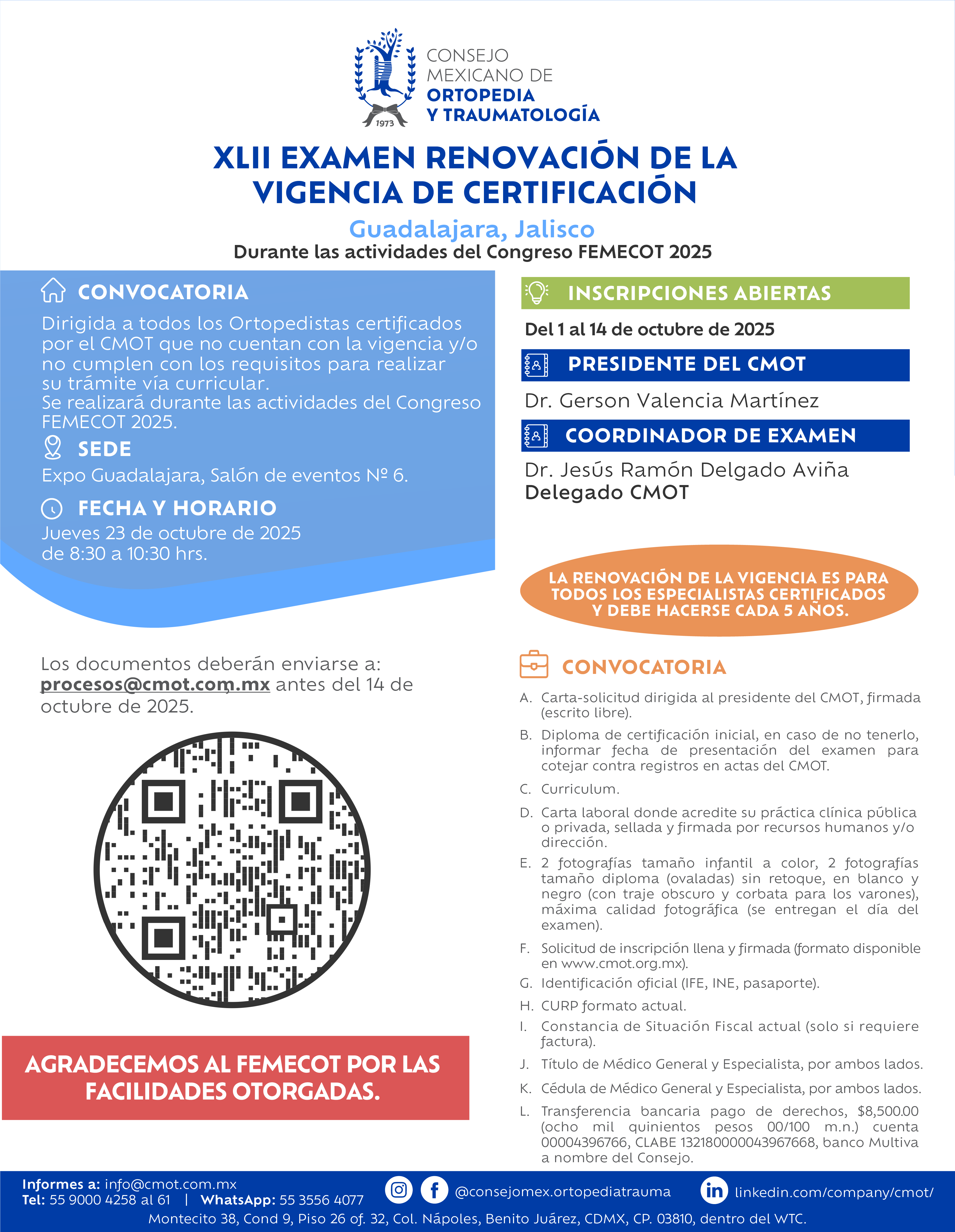 Coordinador del examen: Dr. Jesús Ramón Delgado Aviña del CMOT en Guadalajara.